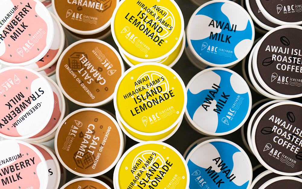 淡路島ローカルアイスクリーム屋さん Awaji Blue Coast icecream ABCアイスクリーム 淡路島で出会った多くの生産者さんに、美味しい果物や牛乳、素材を紹介いただきABCのアイスクリームが誕生。季節限定のアイテムをお楽しみに! 徒歩2分ほど