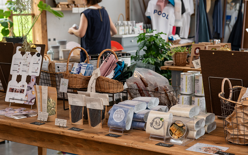 淡路島のいいもの、生活にプラスしたいグッズや島時間が楽しくなるアイテムを揃えました。 ふらっと気軽に立ち寄れるスポットとしてご利用ください。週末には不定期でマルシェや ワークショップなど開催予定です! 環境保全・プラスチックごみ削減に向けた取り組みを おこなっております。お買い物の際はエコバッグのご持参にご協力をお願いします。