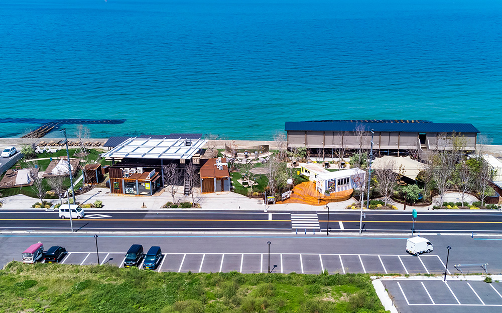 海水浴だけでなく、夕日を眺めながらの散歩にも。夏の期間中は海の家がございます。(駐車場は有料です)