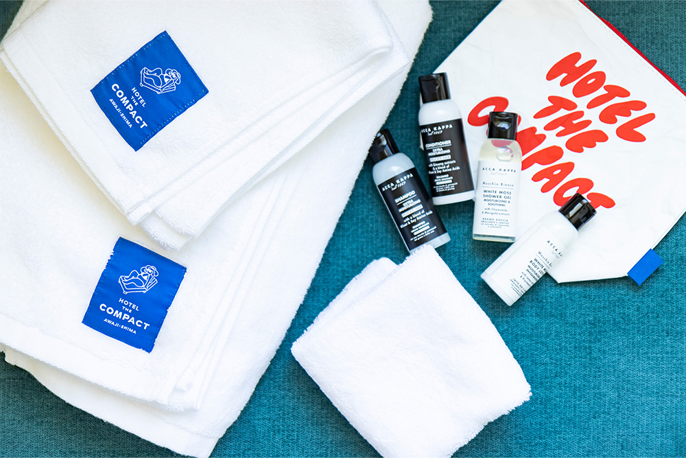 イラストレーターSHOGO SEKINEさんによるホテルザコンパクトのイラスト入りアメニティポーチはオリジナル!お持ち帰りいただき普段でも是非お使いください。