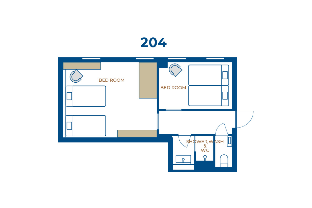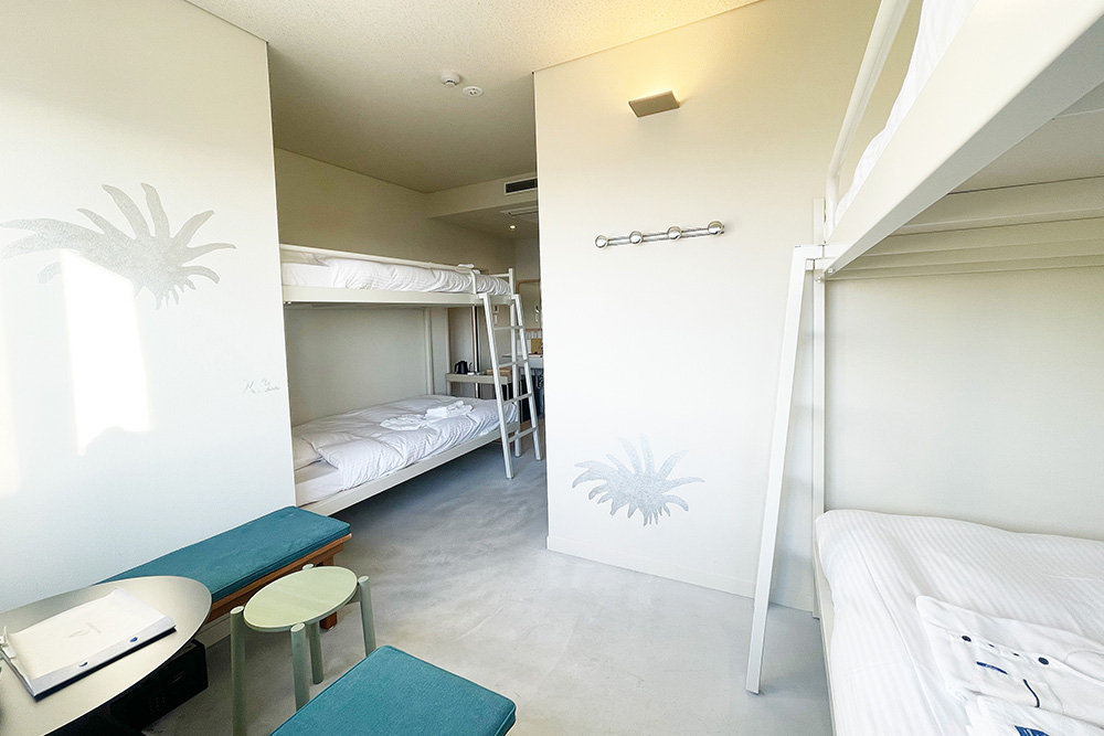 二段ベッドが2台のカジュアルなお部屋で、友人同士などのグループでのご利用にオススメです。(3Fに間取り違いの3室のみ)